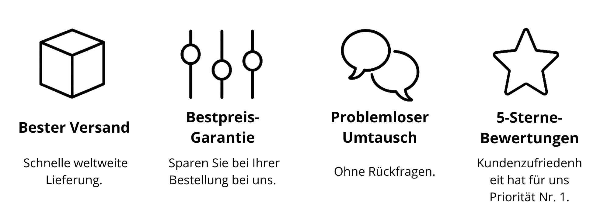 Alle unsere Produkte haben eine dreijährige Garantie. Außerdem hast du ein 14-tägiges Rückgaberecht. Alle Details findest du in unserem Rückgabebereich.