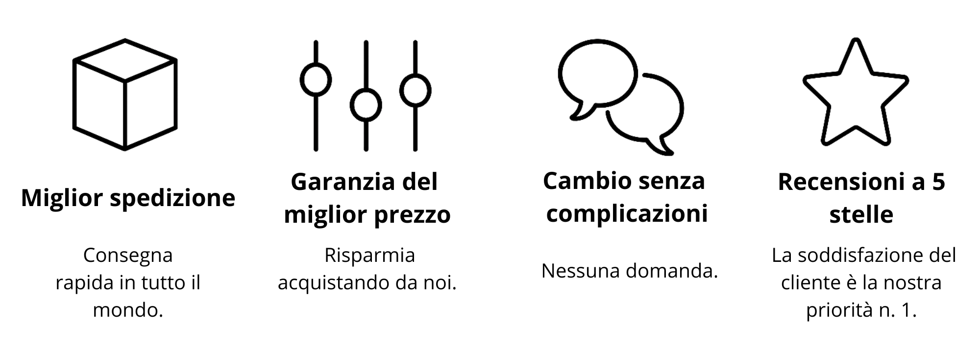 Tutti i nostri prodotti hanno una garanzia di tre anni. Inoltre, hai un periodo di 14 giorni per restituire il prodotto. Consulta tutti i dettagli nella nostra sezione resi.