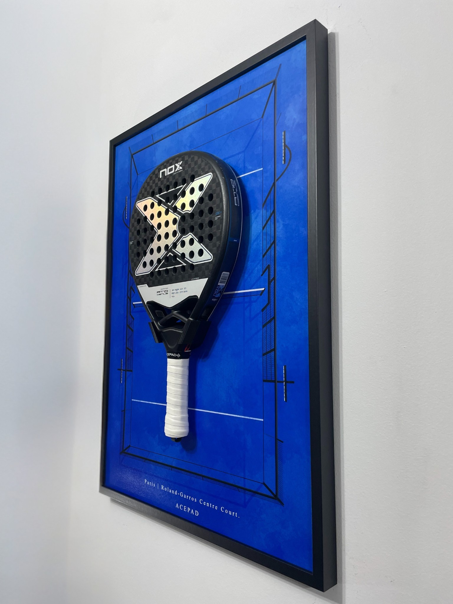 Convierte tu pala en arte con estos cuadros premium de pared inspirados en pistas míticas de pádel que, además de decorar, integra una repisa/gancho para colgar tu pala con estilo y mantenerla siempre a mano. Ideal para casa, club o zona de trabajo.