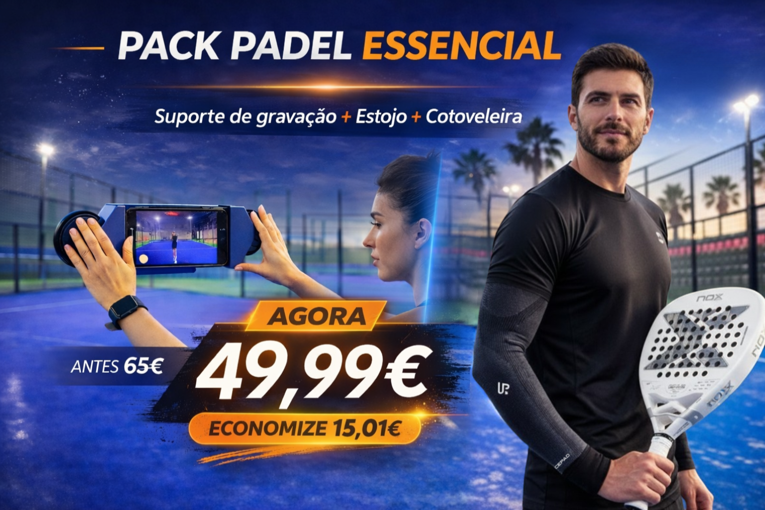 Grava os teus jogos de padel de diferentes ângulos, melhora a tua técnica, captura os melhores pontos e os momentos mais emocionantes com este suporte compatível com qualquer dispositivo móvel.